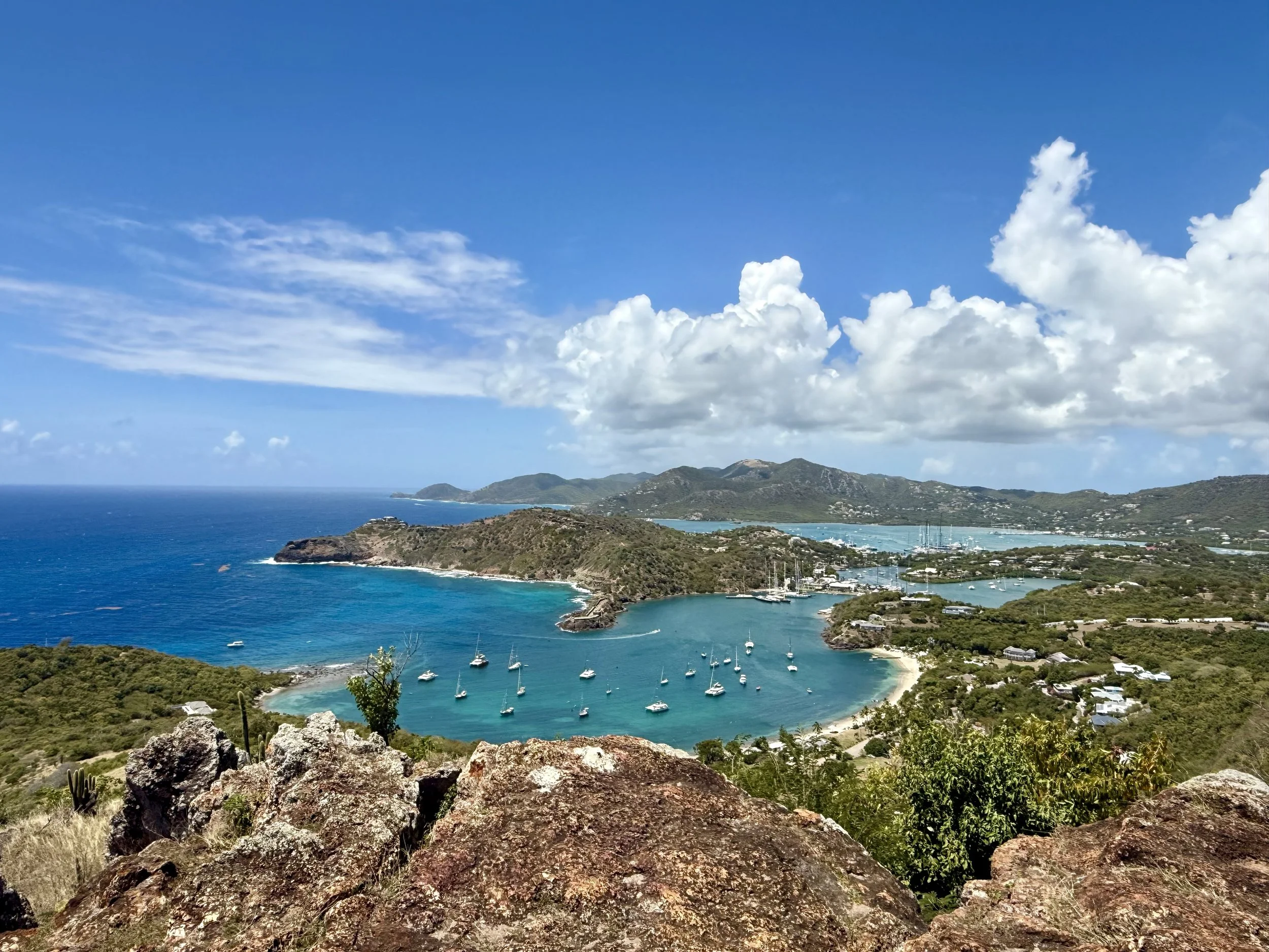 The water was striking—clear, vibrant, and constantly shifting in color. It reminded us immediately of Sardinia, where we had traveled the previous summer. The rugged coastline and brilliant blue water felt familiar, but with one notable difference: the water in Antigua was warm. No hesitation required before jumping in.